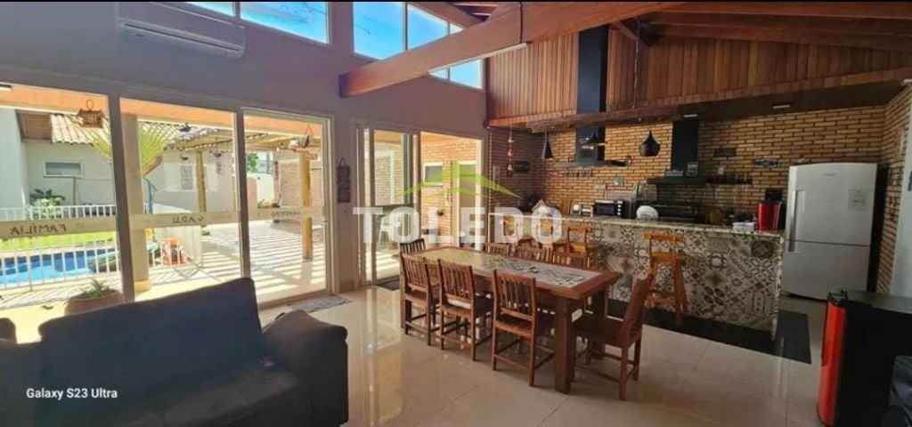 04 dormitórios sendo duas suítes e uma com banheira de hidromassagem, sala de tv, sala de estar, cozinha planejada, 04 banheiros, lavanderia coberta, sótão, ampla área gourmet, piscina 3x6m² aquecida, cooktop, coifa, churrasqueira e pergolado, garagem coberta para 02 carros.