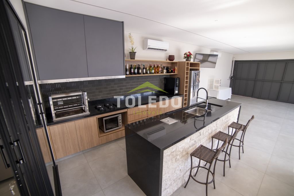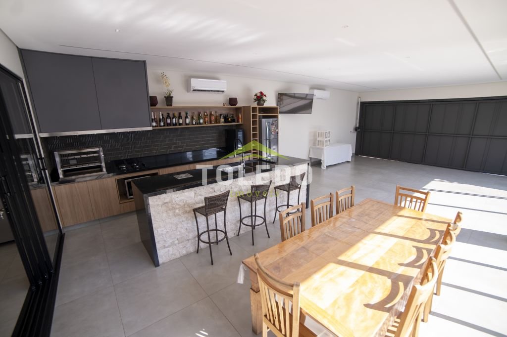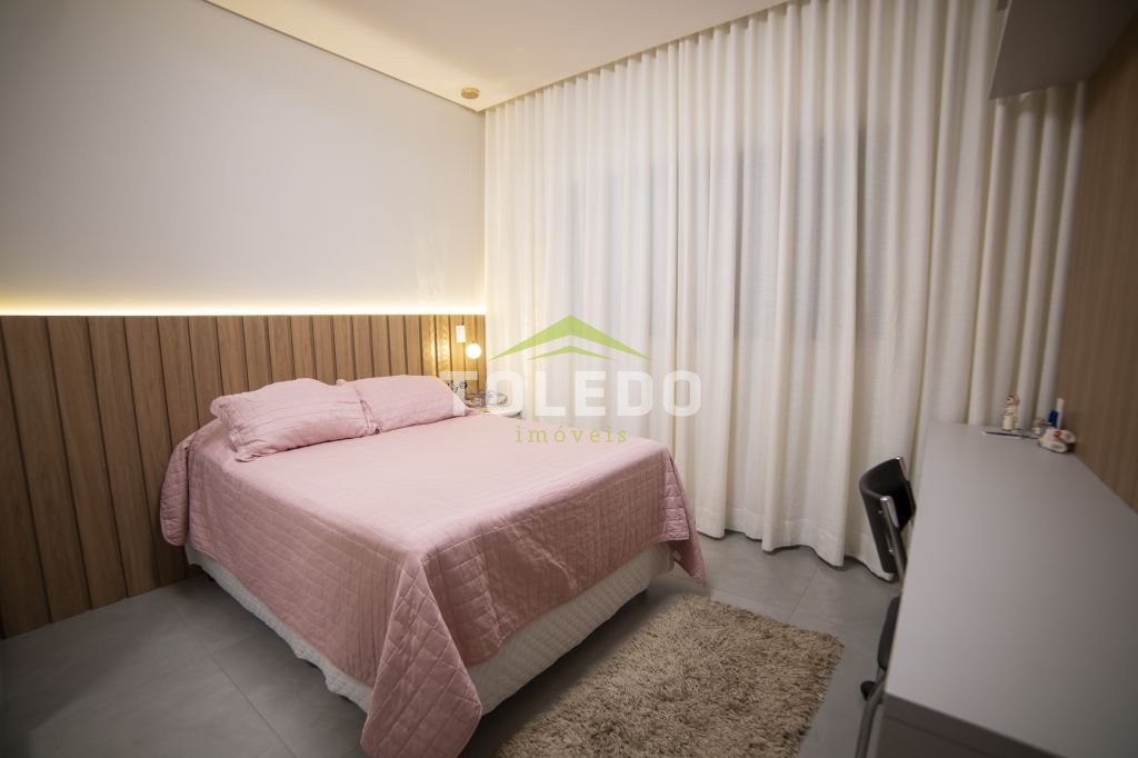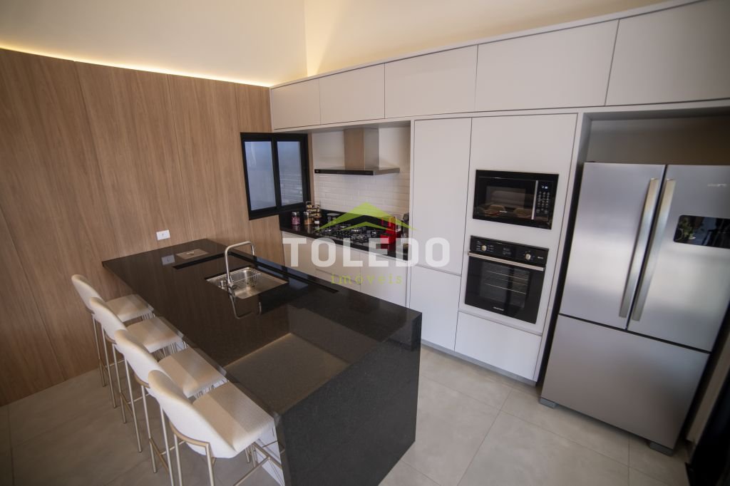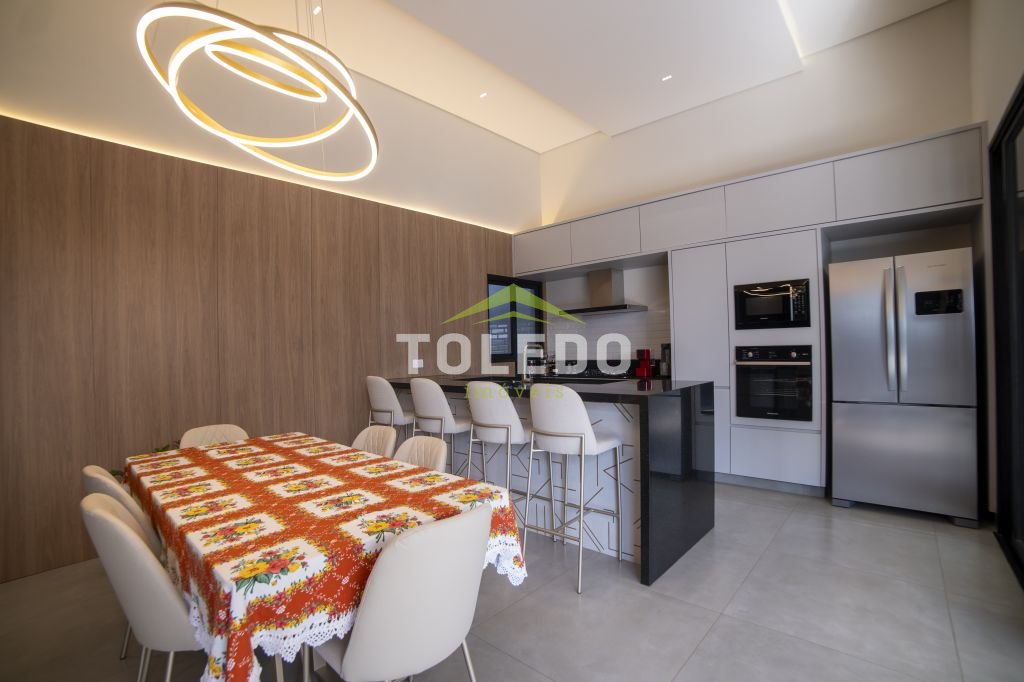 03 dormitórios sendo uma suíte com closet, sala de estar / sala de tv, sala de jantar, cozinha americana toda planejada de armários e com equipamentos embutidos (Cooktop, coifa, forno e micro-ondas), banheiro social, lavanderia coberta com armários planejados, área de lazer com área gourmet equipada, piscina aquecida com hidromassagem, garagem coberta para 04 carros com portão automatizado.